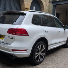 | Features/Extras | 2 Zone Electronic Climate Control with Automatic Air Recirculation, 20in Alloy Wheels – Tarragona, ASR Anti Slip Regulation, Air Vent Surrounds – Matt Chrome, Alarm with Interior Protection, Aluminium Look Pedals, Automatic Dimming Rear View Mirror, Automatic Headlight Height Adjustment, Bluetooth Telephone Preparation for Hands Free Profile Enabled Telephones, Colour Screen – 8in, Cruise Control, DAB+ – Digital Radio Reception, Darkened Rear Light Clusters and Indicators, Daytime Running Lights, Differential Lock – Electronic, Door Mirrors – Electrically Adjustable-Heated and Folding, Door Sill Protectors with R-Line Logo, Driver Alert System, Footwell Illumination – Front and Rear, Front Fog Lights with Cornering Lights, Gloss Black B Pillar, Head Restraints – Front Whiplash Optimised, Headlight Washer System, Headlights – Bi-Xenon – Gas Discharged with Rear Tail Lights, Headlights – Dusk Sensor with Coming-Leaving Home Function, Heated Front Seats, Keyless Entry, Leather Trimmed Gear Knob, Load Lashing Points x4 in Luggage Compartment, Load Sill Protector, Luggage Compartment Light, MDI – Multi Device Interface, One Touch Indicator, Panoramic Sunroof – Electric and Sliding Glass, Parking Sensors – Front and Rear, RNS 850 Touch Screen Satellite Navigation Radio System with Integrated Voice Control, Reading Lights, Rear Roof Spoiler, SD Card Reader, Sports Suspension, Sun Visors – Illuminated Mirrors, TCS – Traction Control System, Tailgate – Electric, Tinted Glass – Heat Insulating Rear 65 Percent Light Absorbing from B Pillar Backwards, Trailer Stability Control, Unique R-Line Badging |